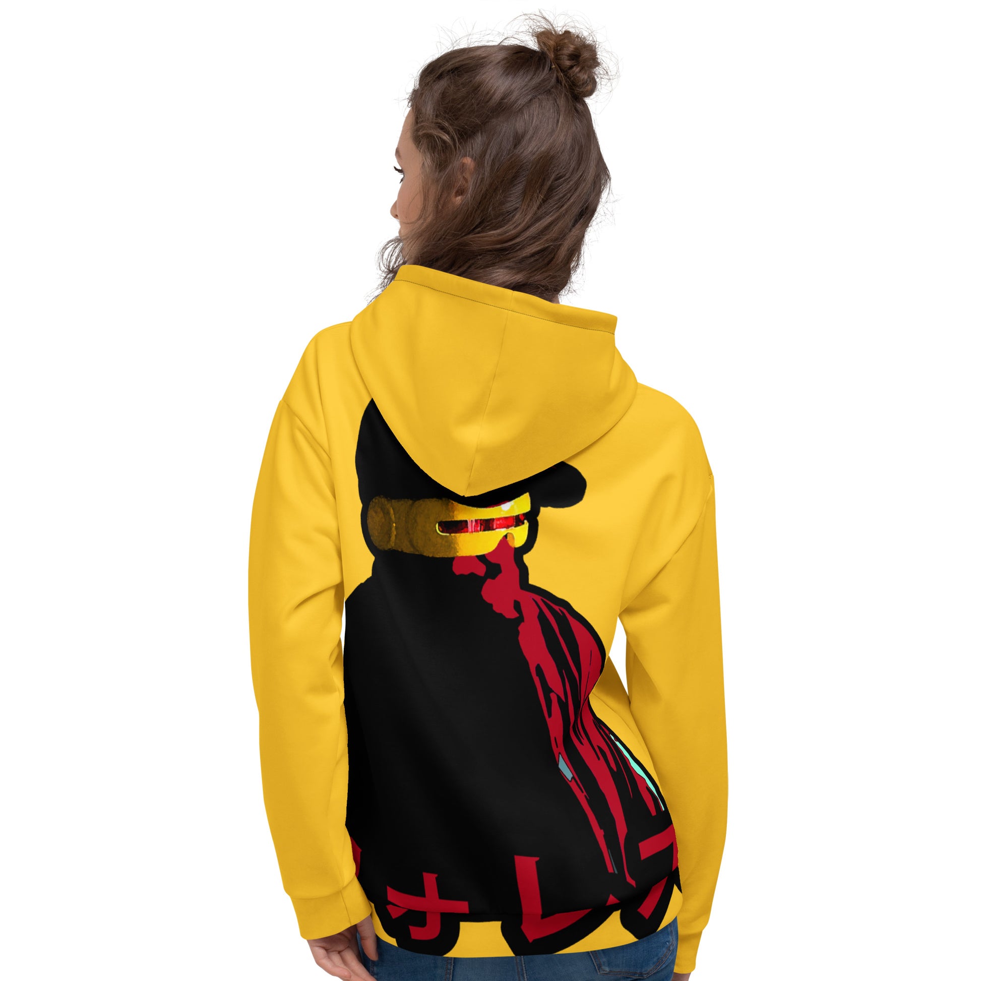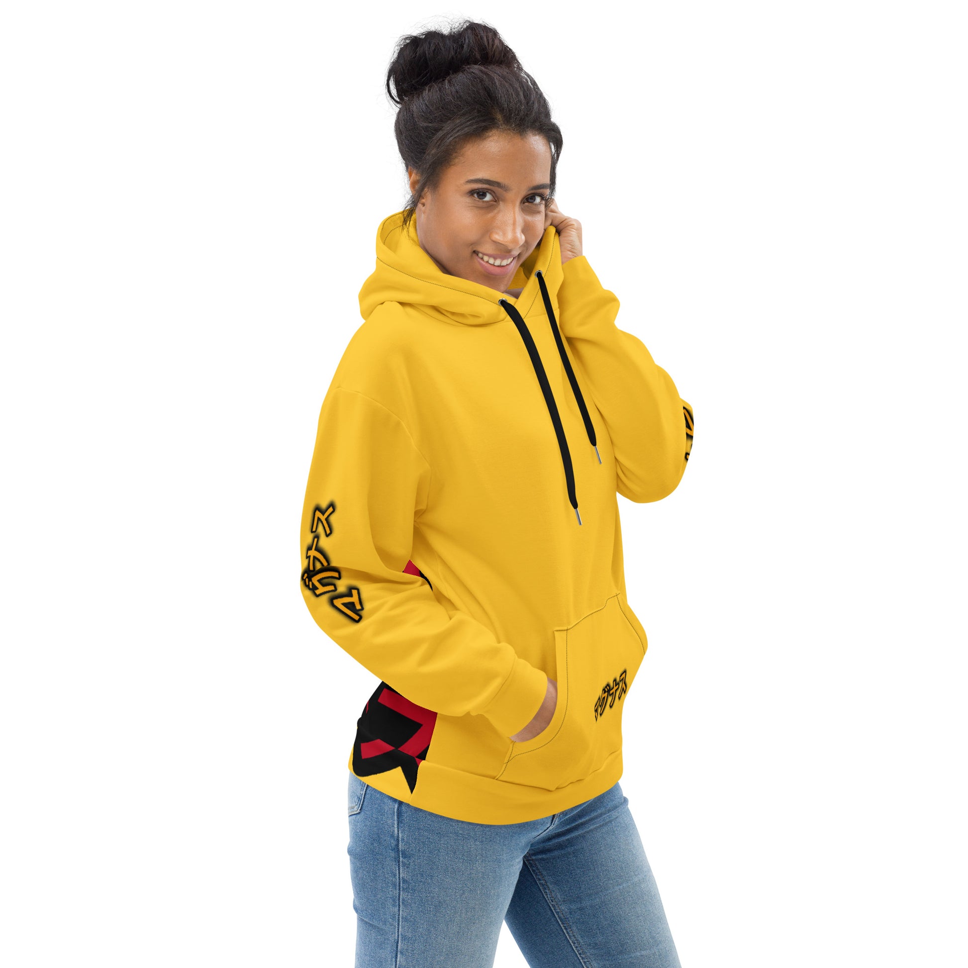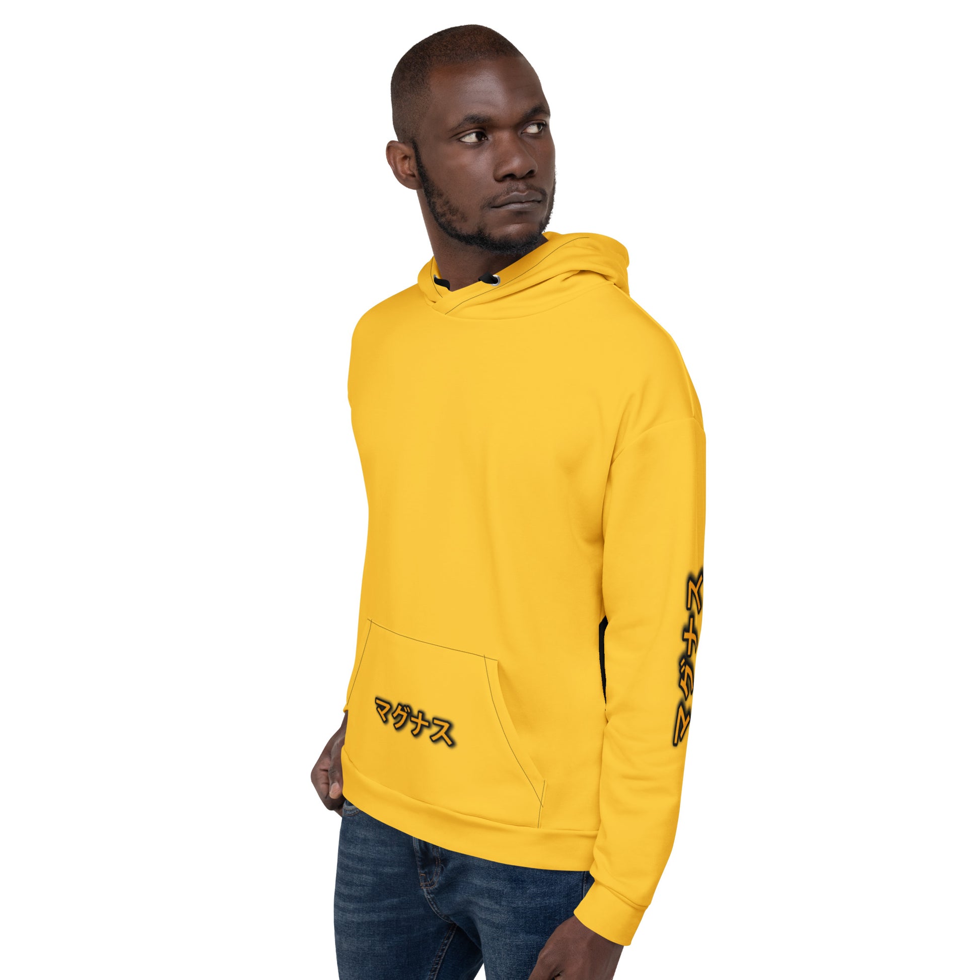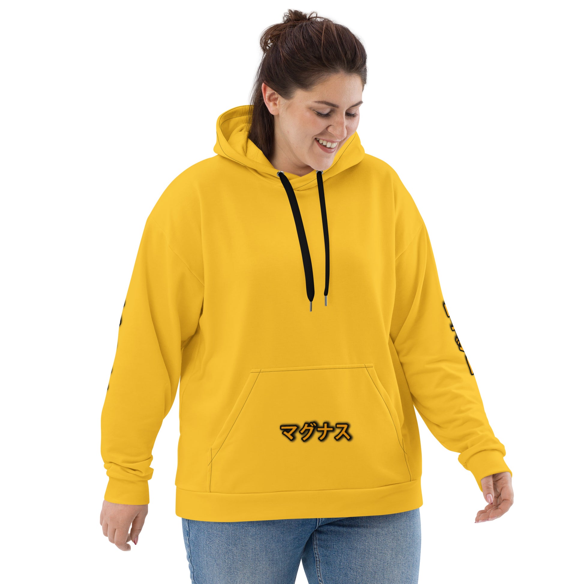 - Moon-shaped patch for a custom logo on the inner back of the hoodie
